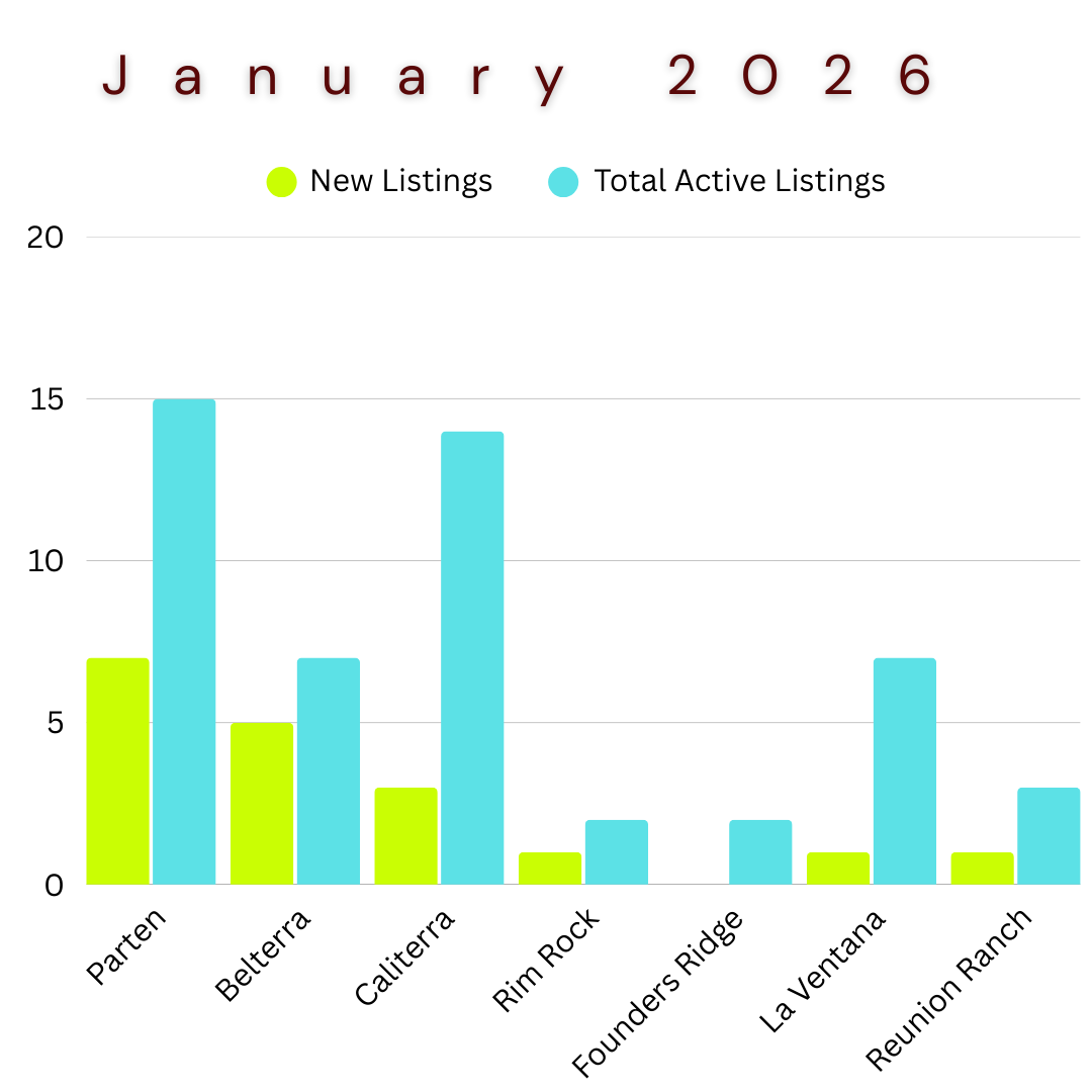 While some neighborhoods like Rim Rock and Founders Ridge saw very low new listing activity this month, Caliterra maintains a healthy selection with 14 active listings. For buyers, this means more opportunities to find a home that fits your specific needs without the intense bidding wars of years past.