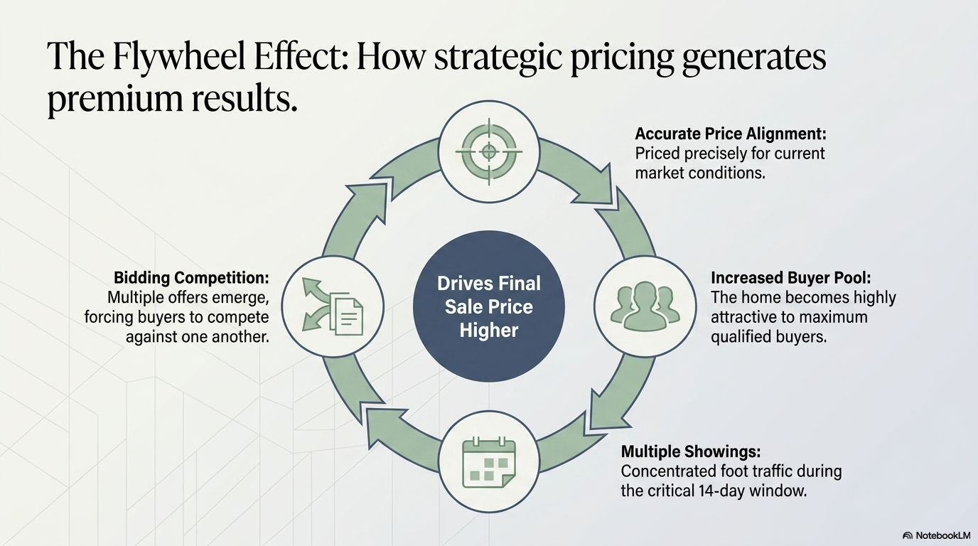 When a home enters the market above its true market value, it typically receives less initial interest. The first two weeks on the market are the most critical window for exposure. Buyers are highly alert to new listings, and if a home doesn’t generate strong activity during that time, it can quickly become overlooked.