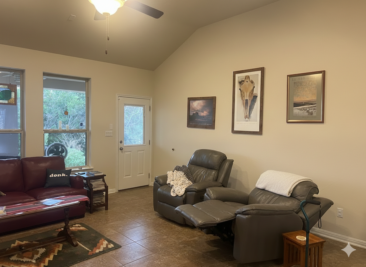 The goal is to depersonalize the space so potential buyers can visualize themselves living there, while maintaining a warm, "contemporary" charm that feels like a home, not a showroom.