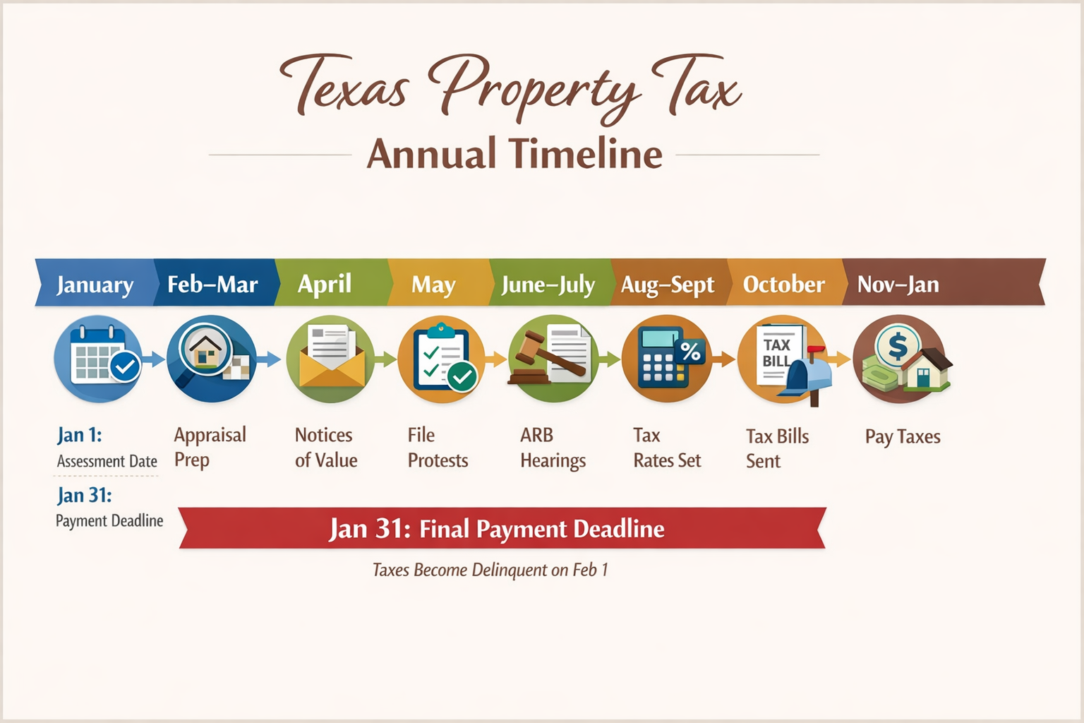 A: Each year, the county appraisal district (CAD) estimates your property’s market value as of January 1 based on recent comparable sales, property characteristics, and market trends. After exemptions are applied, the remaining amount becomes your taxable value.